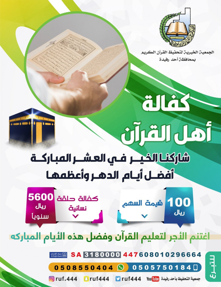 *اطرح البركة في مالك بالمساهمة في تحفيظ القرآن الكريم في أفضل أيام العام*