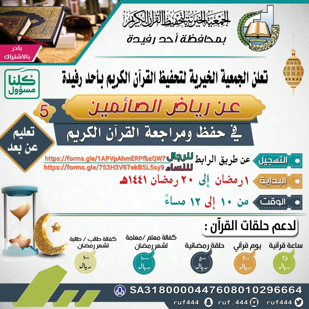 *تعلن الجمعية الخيرية لتحفيظ القرآن الكريم بمحافظة أحدرفيدة*